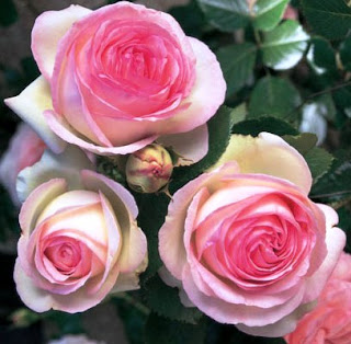 Ses massifs en broderie sont garnis de rosiers aux teintes pastel. Clos d'un mur orné d'une haie de rosiers, son parterre de vivaces est de couleur bleu et rose.